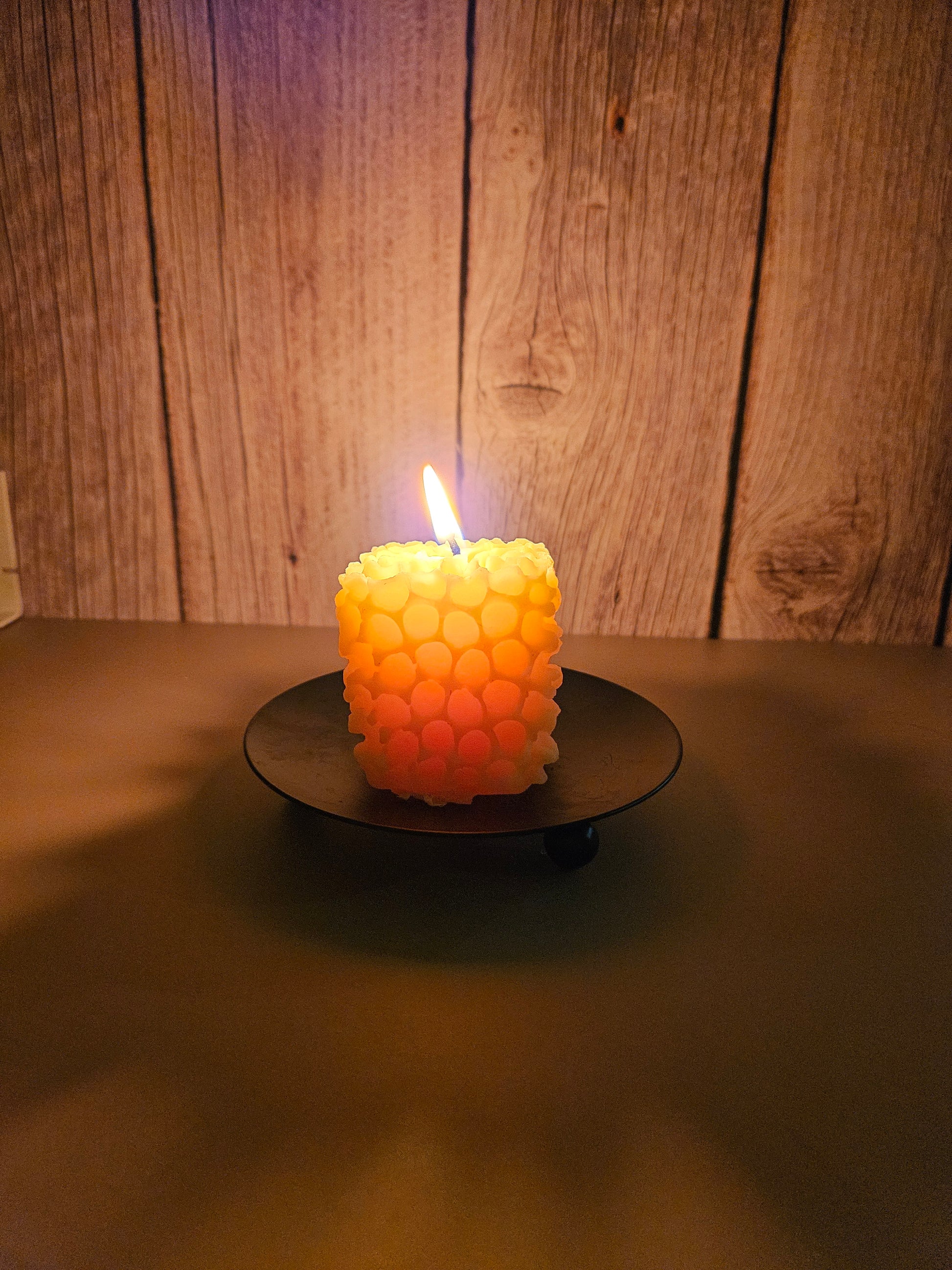 Hand poured pure beeswax candle 2 x 2 inch square. Beeswax candles have been historically used to purify the air and were often used in churches. They are smokeless and dripless also.
